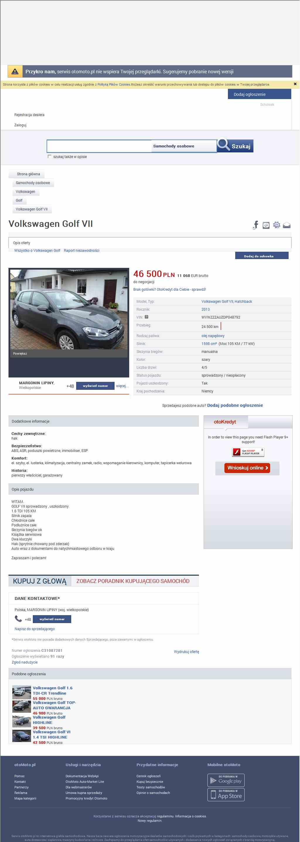 dodatkowo co ciekawe auto jest ze stycznia 2013 roku i do stycznia 2014 zrobiło 24.500km i do dzisiaj jest z tym samym przebiegiem (długo coś stało i nie jeździło)