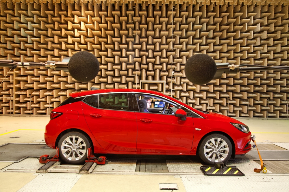 Cisza. W tym pomieszczeniu o niezwykłym wystroju można by wręcz usłyszeć dźwięk upadającej igły. Ustawioną pośrodku nową Astrę otaczają liczne mikrofony. Czyżby właśnie nagrywano dźwięk silnika nowej gwiazdy klasy kompaktowej na potrzeby kolejnej kampanii reklamowej?
