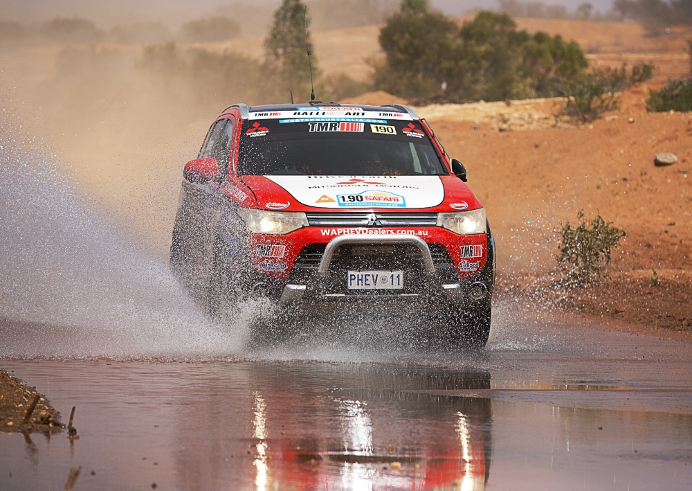 Mitsubishi Outlander PHEV, który w Australii sprzedawany jest zaledwie od kwietnia 2014 roku, wzbudził duże zainteresowanie w czasie ceremonii otwarcia rajdu odbywającej się w piątek, 19 września. Był jedynym uczestniczący w tym rajdzie samochodem hybrydowym z ładowaniem zewnętrznym. W prologu przeprowadzanym następnego dnia samochód zajął mocne 15. miejsce wśród 26 pojazdów zakwalifikowanych do grupy samochodów. Kolejnego dnia, 21 września, gdy rajd rozpoczął się na dobre, Outlander PHEV pokazał możliwości, jakie daje mu układ napędowy Twin Motor 4WD na nieutwardzonych nawierzchniach dróg, a poruszając się po równej drodze na bieżąco ładował akumulator trakcyjny przy użyciu systemu odzysku energii. Outlander PHEV zakończył 1. etap na 17. miejscu w klasyfikacji generalnej. Etap ten składał się z szybkich odcinków, jazdy po bardzo wyboistych drogach, a także w terenie piaszczystym o charakterze pustynnym. W dniu 22 września rozegrano 2. etap, który Outlander PHEV ukończył na 16. miejscu w klasyfikacji generalnej, a następnego dnia, po 3. etapie zajmował już 13. miejsce, mimo strat czasu wywołanych trzykrotnym przebiciem opon. Kolejny etap rozgrywany 24 września samochód zakończył z rozbitą na wybojach odcinka specjalnego przekładnią kierowniczą. Samochód nie mógł uczestniczyć w etapie 5., za co załoga otrzymała karę 16 godzin 50 minut, co z kolei spowodowało spadek na 17. miejsce w klasyfikacji generalnej. Kolejnego dnia, w czasie 6. etapu, przy wyprzedzeniu wolniejszego rywala poważnemu uszkodzeniu uległo zawieszenie po lewej stronie samochodu. Spowodowało to konieczność dokonania naprawy, za którą organizator ukarał załogę doliczeniem 16 godzin 42 minut, co zepchnęło Outlandera PHEV na 20. miejsce. Ostatniego dnia rajdu Outlander PHEV szybko odrabiał straty i zakończył 7. etap z drugim najlepszym czasem, kończąc imprezę na 19. pozycji w klasyfikacji generalnej.
